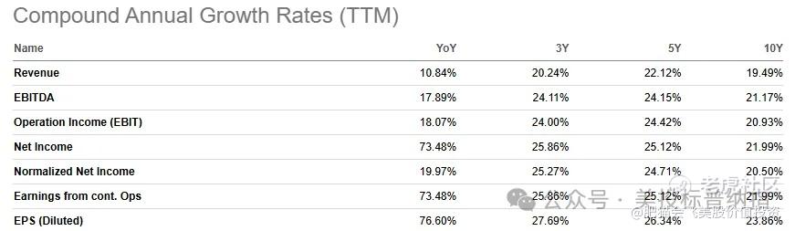同时,LULU的增长表现也非常亮眼,过去十年的营业额年复合增长率达19.5%,净利润也同样达到22%。即便在营业额增速放缓的情况下,净利润增速却进一步加速。