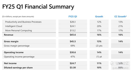 我们可以看到微软主要业务线的执行力很强,特别是在云计算和人工智能方面——我们快速总结一下公司的财务和运营表现,分部门来看。