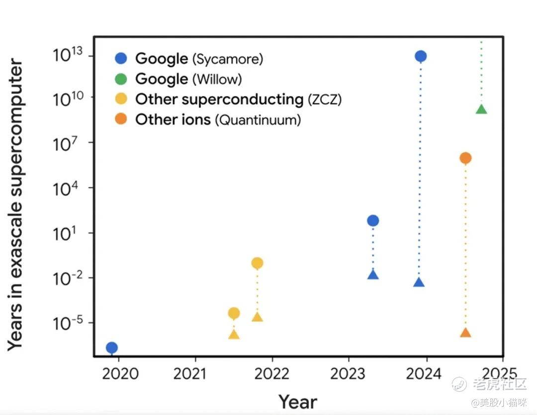 • 处理能力突破:Willow在5分钟内完成了目前超级计算机需要10乘10的42次方年才能完成的计算。
