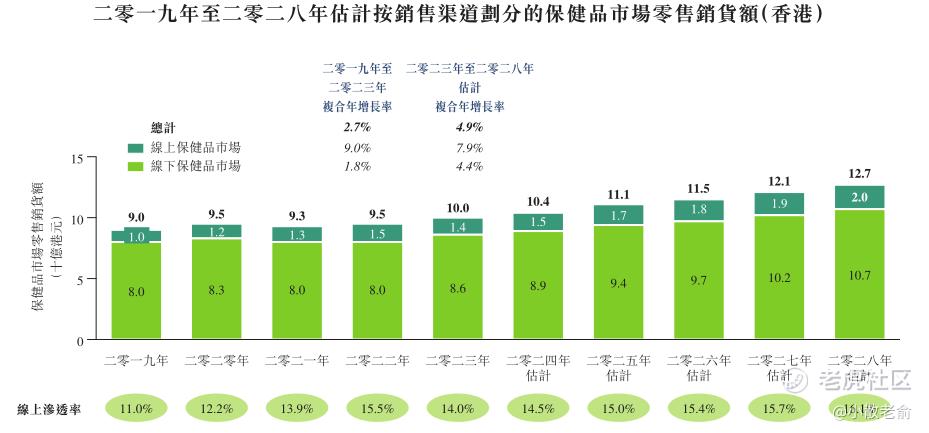 尽管新冠病毒的爆发带来了挑战,但香港保健品市场的零售销货额仍然持续上升,由2019年的90亿港元增至2023年的100亿港元,复合年增长率为2.7%。该增长凸显出(即使在疫情扰乱整体零售市场情况下)人们对健康产品的需求仍在持续增长。弗若斯特沙利文估计,零售销货总额预期将于2028年达到127亿港元,自2023年起的复合年增长率为4.9%。随着终端顾客将健康放在首位,并寻求保持健康的积极措施,保健品的需求预计将继续呈上升趋势。