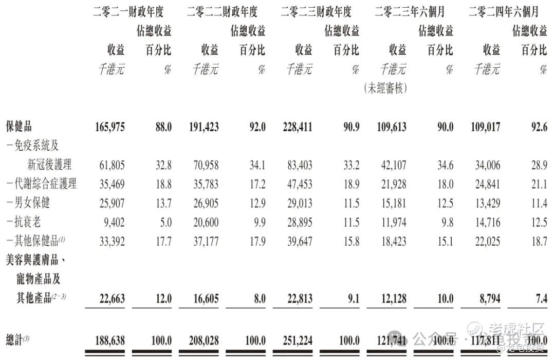 保健品:包括免疫系统及新冠后护理、代谢综合症护理、男女保健、抗衰老及其他保健品。