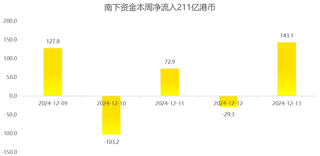 南下资金本周净流入211亿港币: