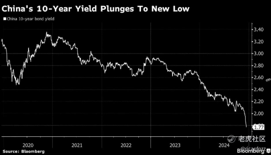 在中国强大的政治局作出决定后债券价格飙升 最坚定的承诺 货币宽松中国10年期国债收益率跌至1.77%的纪录低点较长期国债收益率也下跌。