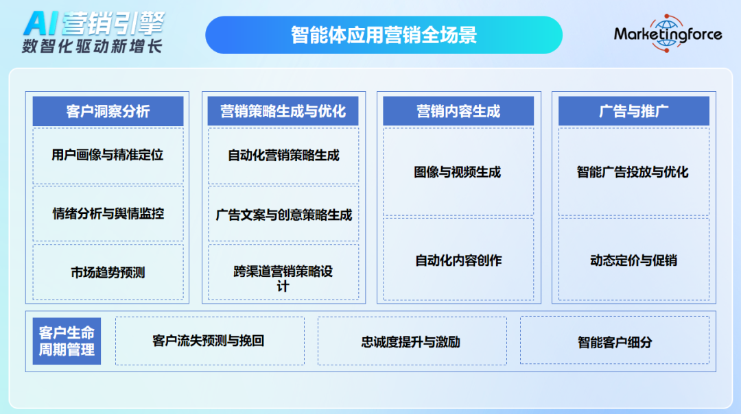 在Agent时代,Marketingforce倡导以场景化、生态化为核心,通过深度融入企业场景,致力于将Agent技术转化为真正推动生产力的引擎。