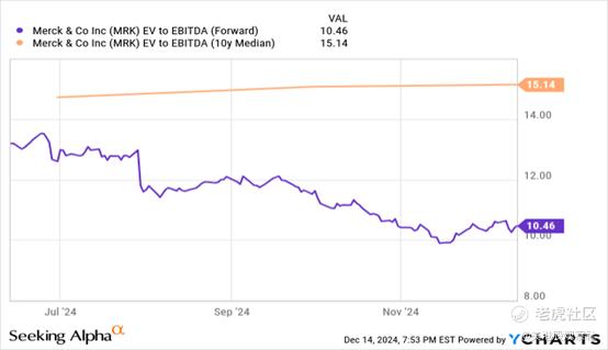 默沙东的EBITDA倍数仅为10%,与10年中位数相比,默沙东的交易价格大约有30%的折扣,表明现在的廉价。