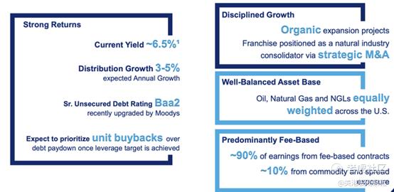 公司还运输了庞大的约700万桶/天的原油,并且能够出口超过100万桶/天的NGL和原油。