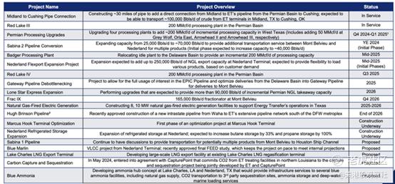 公司的规模还使其能够拥有众多的附加项目,可以逐步增加其现有资产组合的产能。例如,公司的Lone Star Express Expansion在现有资产上提供了每天9万桶的增量NGL外运能力。Frac 9在公司现有的大型场地Mont Belvieu提供了每天165桶的分离器容量。