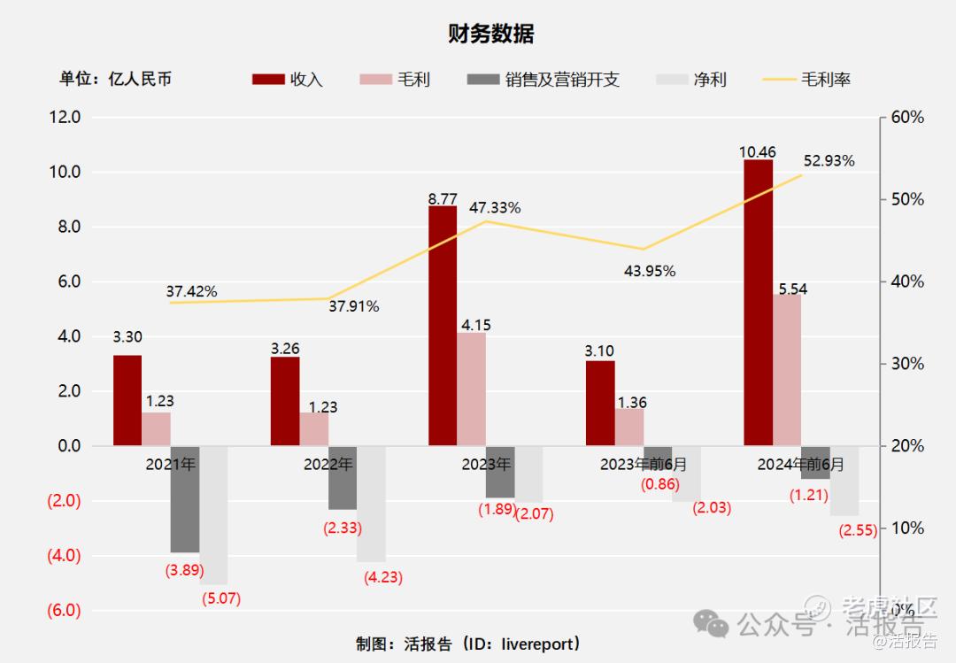 2023年度收入约为人民币8.77亿元,同比增长169.27%,2024年上半年收入约为人民币10.46亿人民币,同比增长237.6%。