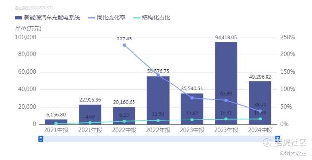 今年上半年,香山股份“新能源汽车充配电系统”业务收入4.92亿元 ,同比增长38.7%。近三年,香山股份新能源板块营业收入年均复合增长率约为100%。