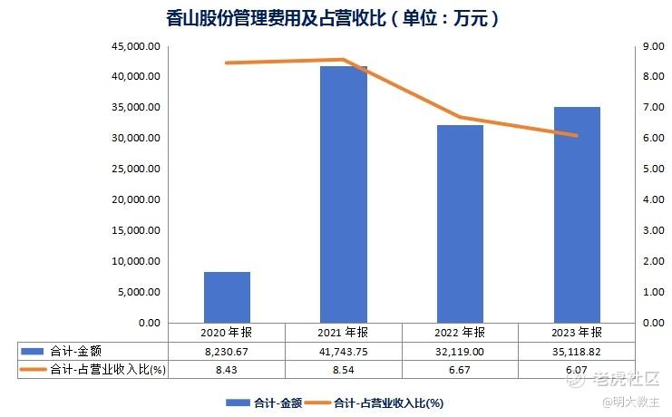 2021至2023年,香山股份销售费用占营业收入比稳定在3.1%-3.5%之间,较2020年及以前明显减少。