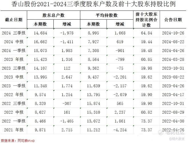 iFind数据显示,香山股份今年三季度末股东户数为14684人,连续2个季度减少。三季度末,香山股份前十大股东持股比例也升至64.84%。香山股份股权集中度提升有助于股价弹性提升。