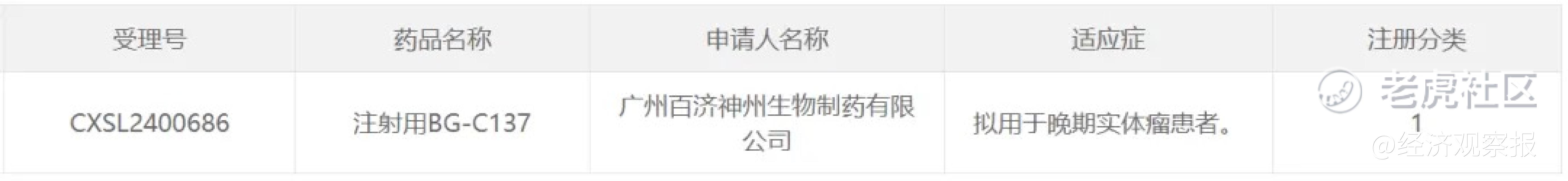 经济观察网讯 据中国国家药监局药品审评中心(CDE)官网12月19日公示,百济神州申报的1类新药注射用BG-C137获批临床,拟开发用于晚期实体瘤患者。公开资料显示,BG-C137是一款靶向FGFR2b的抗体偶联药物(ADC),百济神州拟开发该产品用于上消化道瘤种和乳腺癌。根据CDE官网查询,本次为该产品首次在中国获批临床。