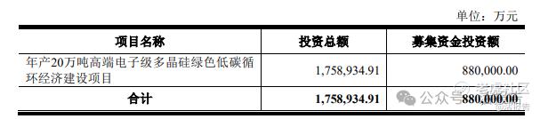 根据招股书,公司拟发行不超过3亿股,拟募资88亿元,用于年产20万吨高端电子级多晶硅绿色低碳循环经济建设项目。