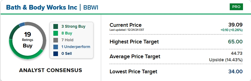 Bath & Body Works(BBWI)今年下跌超过9%。展望2025年,分析师认为该股有约20%的上涨潜力。事实上,TD Cowen最近将该股列为其2025年的最佳投资推荐之一,称其为“被低估的故事”。