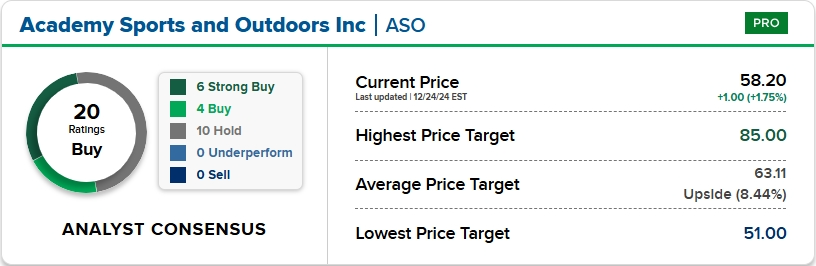 Academy Sports and Outdoors(ASO)今年下跌了近12%。这家全线运动商品和户外娱乐零售商在2025年有大约17%的上涨潜力。