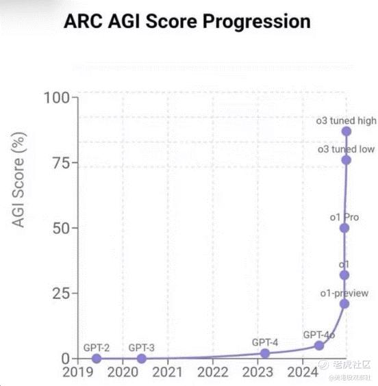 这意味着什么?自从“o”推理范式诞生以来,进展的速度令人震惊,没有明确的迹象表明其扩展有限制。此外,ARC基准分数呈指数增长,表明真正的推理智能可能以指数速度增长。我们可能正在见证一个不可阻挡的飞轮效应,OpenAI现在能够比竞争对手生成更多的合成数据,从而以更快的速度改进其模型,这反过来可以以更快的速度生成更有用的数据。