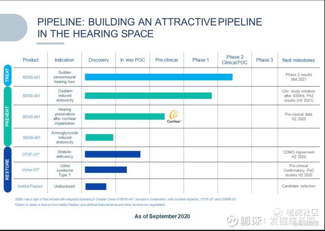 预计将于2021年下半年开始进行SENS-401的临床试验,以治疗顺铂诱发的耳毒性患者顺铂诱导的耳毒性自然史研究将于2021年上半年开始,以产生有关疾病过程的数据SENS-401在因**而引起的突然的感音神经性听力损失的2期研究的主要结果中,目前预计在2021年第4季度