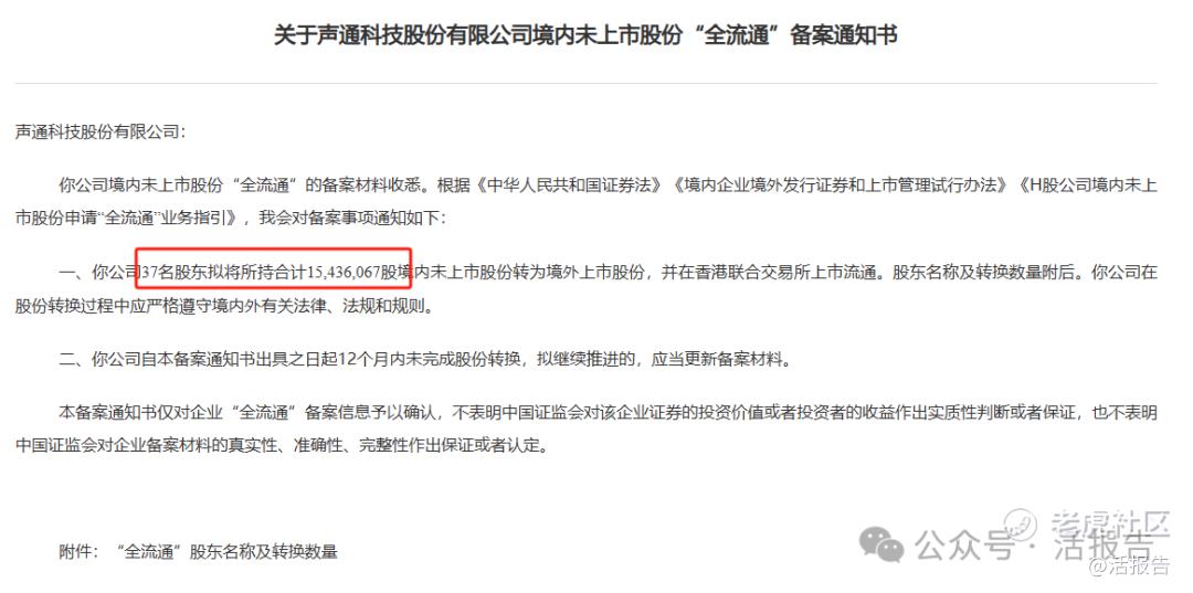 「声通科技」申请“全流通”通过备案,拟转换1544万股