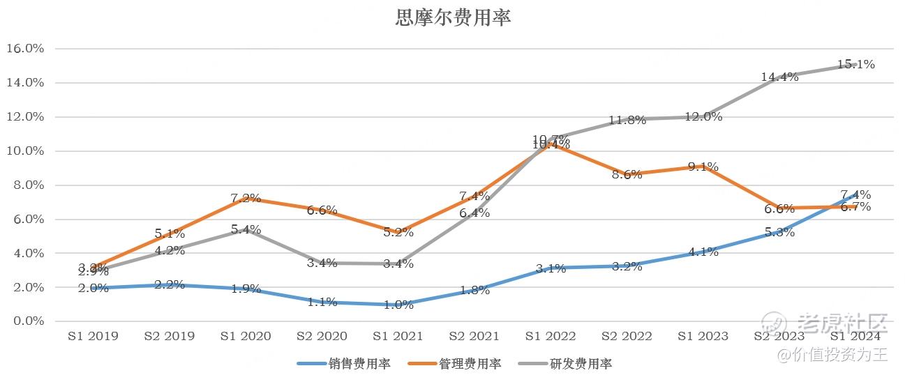 思摩尔并不披露详细的三季报,从半年报上看,今年上半年的研发费用率高达15.1%,远高于去年同期的12%: