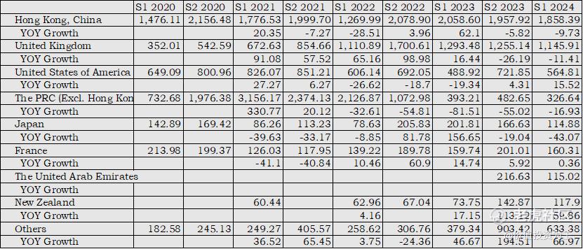 思摩尔的收入主要来自海外,其中,香港的收入主要是转口贸易,产品销往美国,今年上半年,来自美国的营收占比达到40.6%,欧洲及其他地区占比45.4%,中国大陆6.5%: