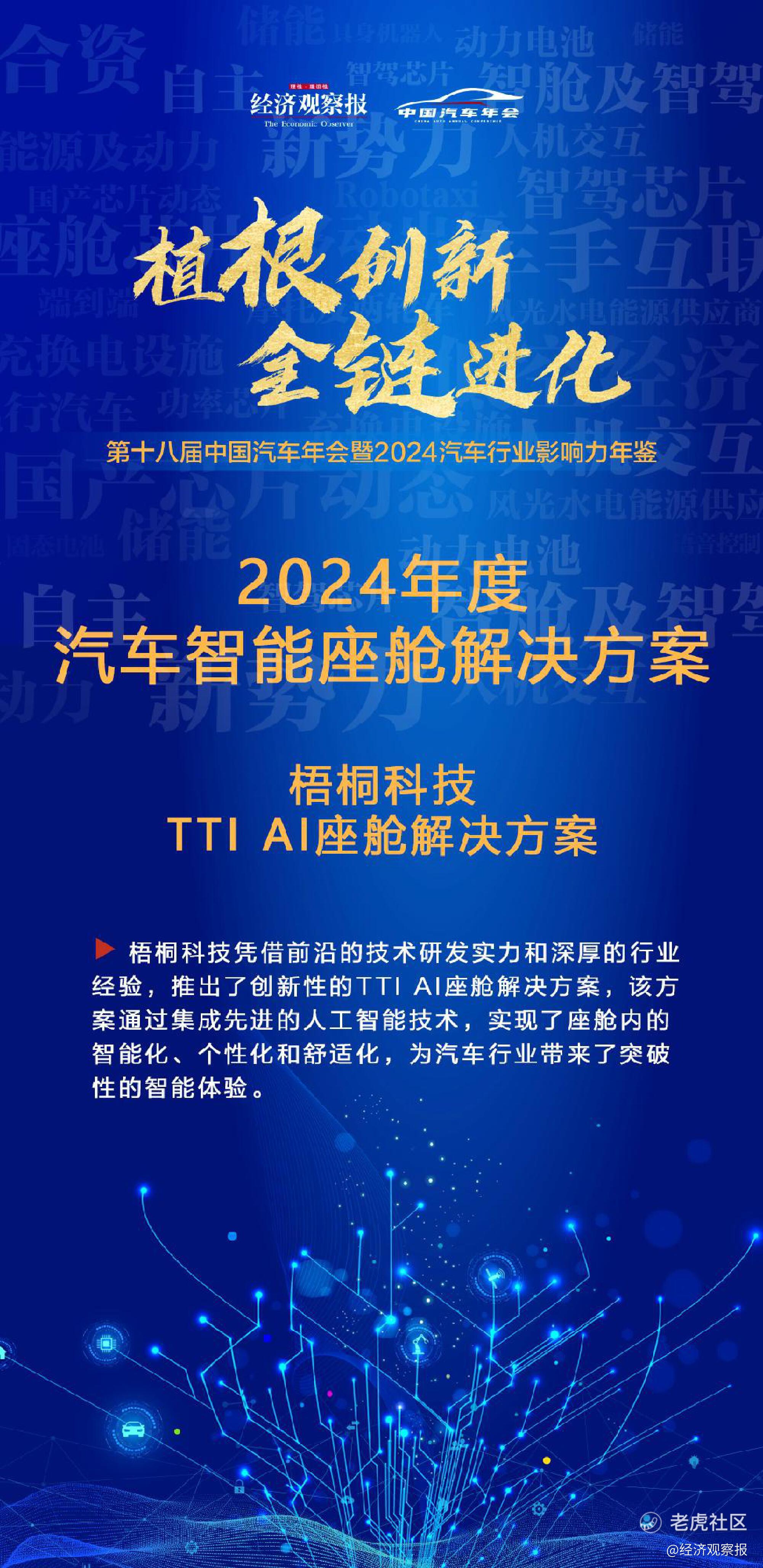 梧桐科技 TTI AI座舱解决方案荣获2024第十八届《中国汽车年会》“年度汽车智能座舱解决方案”称号