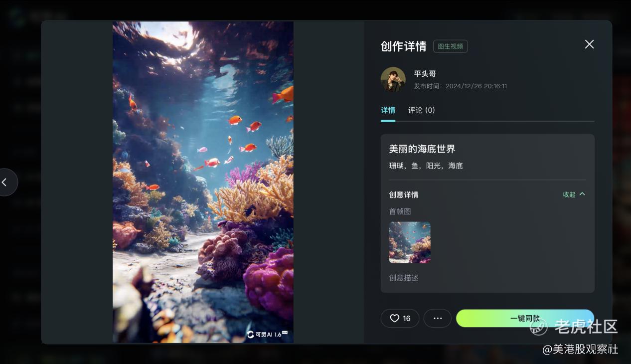 画面质量上,可灵1.6版色彩方面,色域更广、过渡更细腻,无论是描绘晚霞余晖下的宁静海滩,还是霓虹灯下的繁华都市,都能精准还原色彩本真。光影效果上,可灵1.6版可以模拟真实光照,从清晨的柔和日光,到午后的强烈直射光,再到夜晚的朦胧月色,光影变化自然,物体明暗层次分明。