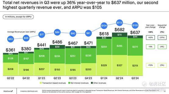 虽然由于利率压力,净利息收入增长放缓至9%同比增长(第二季度为22%同比增长),但交易收入加速至72%同比增长。虚拟货币一直是Robinhood的主要推动力,占公司3.19亿美元交易收入的19%,同比增长165%。