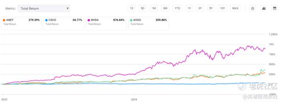 过去两年,AI无疑是最强的风口。自2022年底ChatGPT公开发布以来,英伟达的股价惊人地飙升了875%。虽然比不上英伟达,但Arista Networks也有280%的涨幅,使其也轻松跑赢了标普500指数。