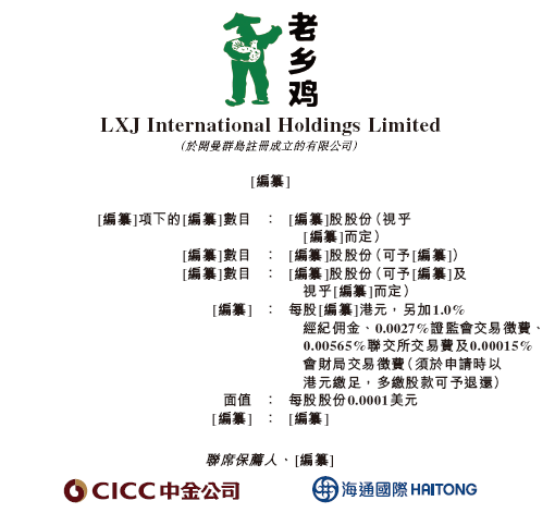 2025年1月3日,来自安徽合肥的安徽老乡鸡餐饮有限公司的控股公司 LXJ International Holdings Limited (简称"老乡鸡”)在港交所递交招股书,拟在香港IPO上市。