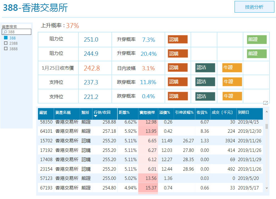 牛熊证方面,牛证主要在205-239.9元范围内广泛加注,当中资金积极流入230-234.9元的相关牛证,占总流入资金约56%,其次则是225-229.9元的牛证,也占近三成资金,其重货区在230-234.9元,占总街货量约45%。
