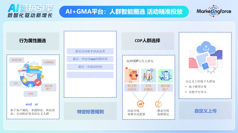 Marketingforce的数据分析Agent,可帮助皇氏乳业实现全渠道客户身份的统一识别,不仅可以真正实现数据打通与多ID体系覆盖,自动完善会员标签体系,还可在此基础上通过学习实现自主跟进,为后续营销执行对人群高效分类、精准定位目标用户。