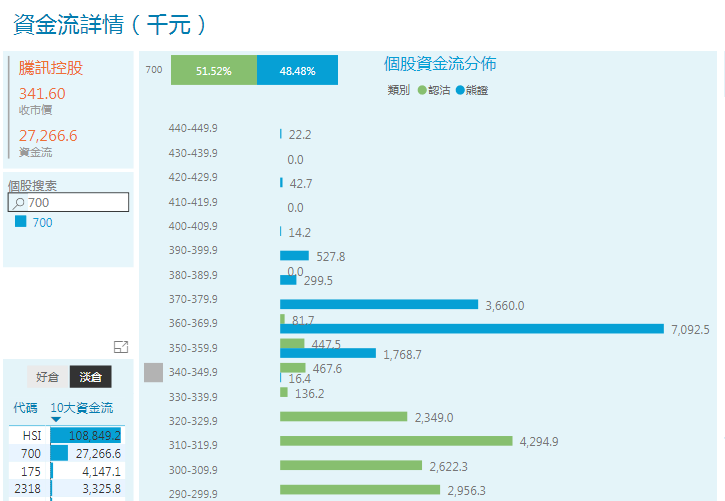 从资金数据流上可见,腾讯股价连涨多日,其好仓25日和28日合共有9600万元流出,先行离场获利,同时有近3000万元入其淡仓作反手部署。