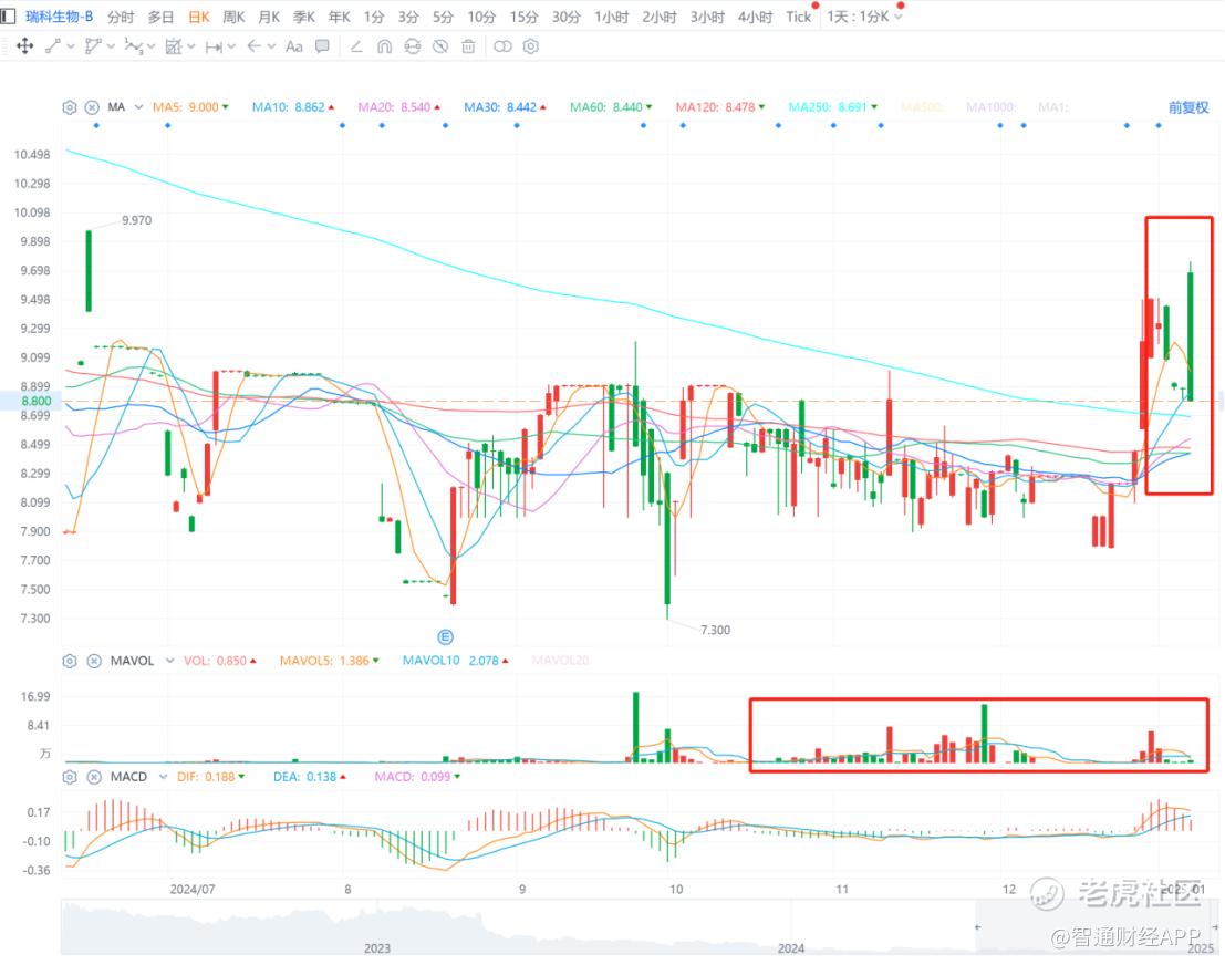 不过在板块表现偏弱的情况下,此前横盘近2个月的瑞科生物在此前公司获8亿元定增,以及近日公司自研新佐剂重组带状疱疹疫苗REC610完成III期临床研究入组的利好消息刺激下,突然在盘中逆势拉升走出一波上涨行情。1月8日,瑞科生物盘中涨幅一度达到9.8%,在普跌的医药板块引起市场关注。