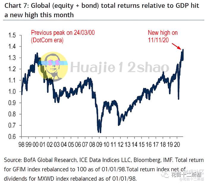 全球总回报(含股市和债市)与GDP的比率,在本月,也就是双十一当日创下新高