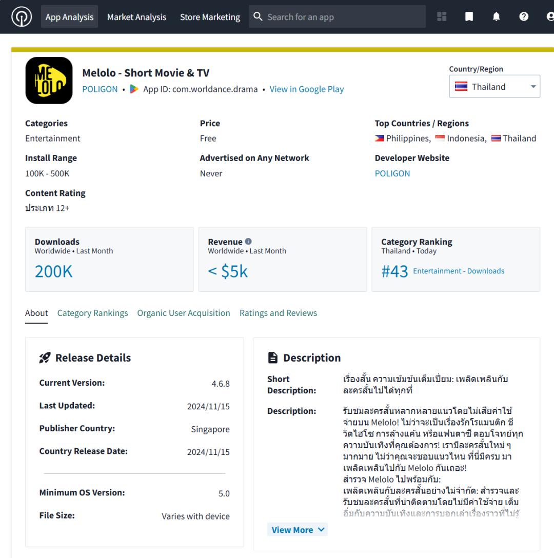 而从应用市场的上线情况来看,Melolo当前也仅上线了Google Play,Apple Store内还未见上线。