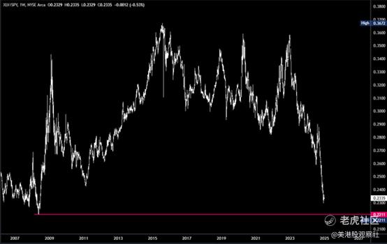 最后,Health Care Select Sector SPDR Fund除以标普500指数的比率接近2008年的低点。