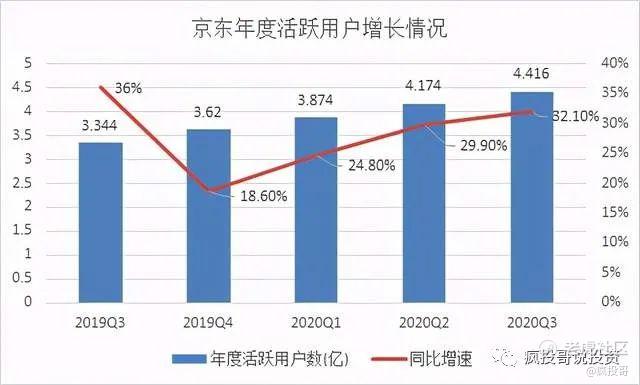 体现在京东的“下沉”,直接带动了用户数量的增长。截至2020年9月30日,京东过去12个月的活跃购买用户数达到4.416亿,近一年新增1.1亿用户,并且仍维持着32.1%的高增速,其中近八成来自于下沉市场。