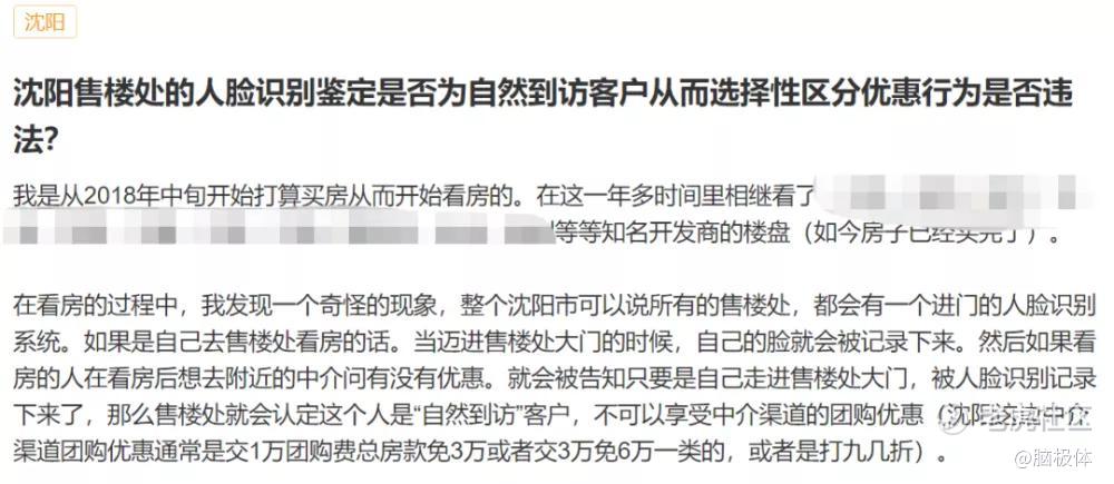 就去看个房跟个人信息扯上关系了,不去填个人信息不就行了吗?原来根据房产业内人士的说法,很多的售楼处都用上了“人脸识别技术”,只要被售楼处摄像机拍到的到访客户都会被“忠实”地记录下来,虽然这个时候可能并不知道你是谁,但未来一旦你真得要在这里买房成交的时候,他们就知道你是一名“老客”还是一名“新客”。