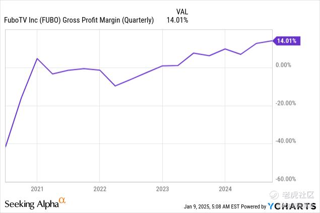 公司的毛利率已从2022年的负毛利率显著改善,2024年第三季度达到14%。公司可能通过提高订阅费用来实现更好的毛利率,但这在一个高度竞争的市场中很难持续进行。尽管Fubo TV管理层经常乐观地谈论最终实现盈利,但如果没有迪士尼交易,仅凭14%的毛利率,在高度竞争的vMVPD市场中,公司很可能难以实现盈利。内容许可的高成本几乎没有留下盈利空间,同时还要支付营销、技术和客户支持等费用。迪士尼交易应该在很大程度上帮助公司扩大规模并降低许可成本。