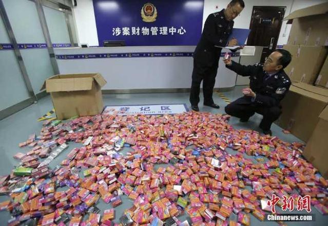 全国的12个窝点同时被警方查抄,共查扣生产加工包装机、封口机等设备3台,查获杜蕾斯、冈本、第六感和杰士邦等品牌避孕套成品20余万盒、半成品30余万盒,另查获大量安全套套芯,包装盒、说明书等包装材料,涉案总金额近5000万元。