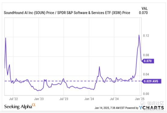 尽管出现了大幅回调,但SoundHound AI相对于其他软件和服务类股票的相对强弱比率仍然处于一个非常高的水平(是其长期平均水平的1.41倍),这可能还不需要太多购买兴趣。