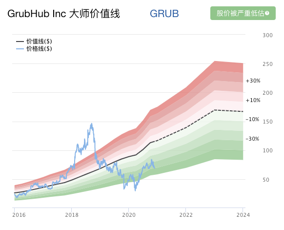 而美国外卖曾经的“老大哥”,目前的行业第二Grubhub,今年年初以来累计上涨了约40%,价值大师官网仍给出了“低估”评级,去年新晋行业第一Doordash则于11月13日向SEC递交了招股说明书,说明书显示截至9月30日的9个月里,DoorDash的营收为19亿美元,净亏损1.49亿美元,最近一次的私募估值是160亿美元。