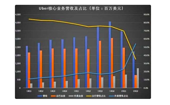 在疫情中被推上风口浪尖的网约车公司Uber,更是要仰仗外卖业务Uber Eats带来的订单。Uber 三季度财报显示,公司三季度营收为31.29亿美元,同比下滑18%。但包括Uber Eats在内的送餐业务净收入则同比增长190%,至11.4亿美元。优步7月6日曾表示,Uber Eats的订单量在第二季度增加了超过一倍。财报发布后,Uber盘后跌超4%。