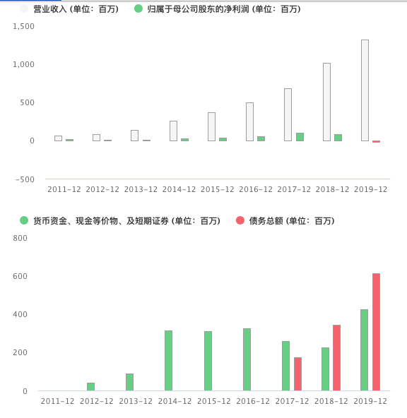 美团外卖近年收入、利润及现金、债务情况,图片来源价值大师中文站