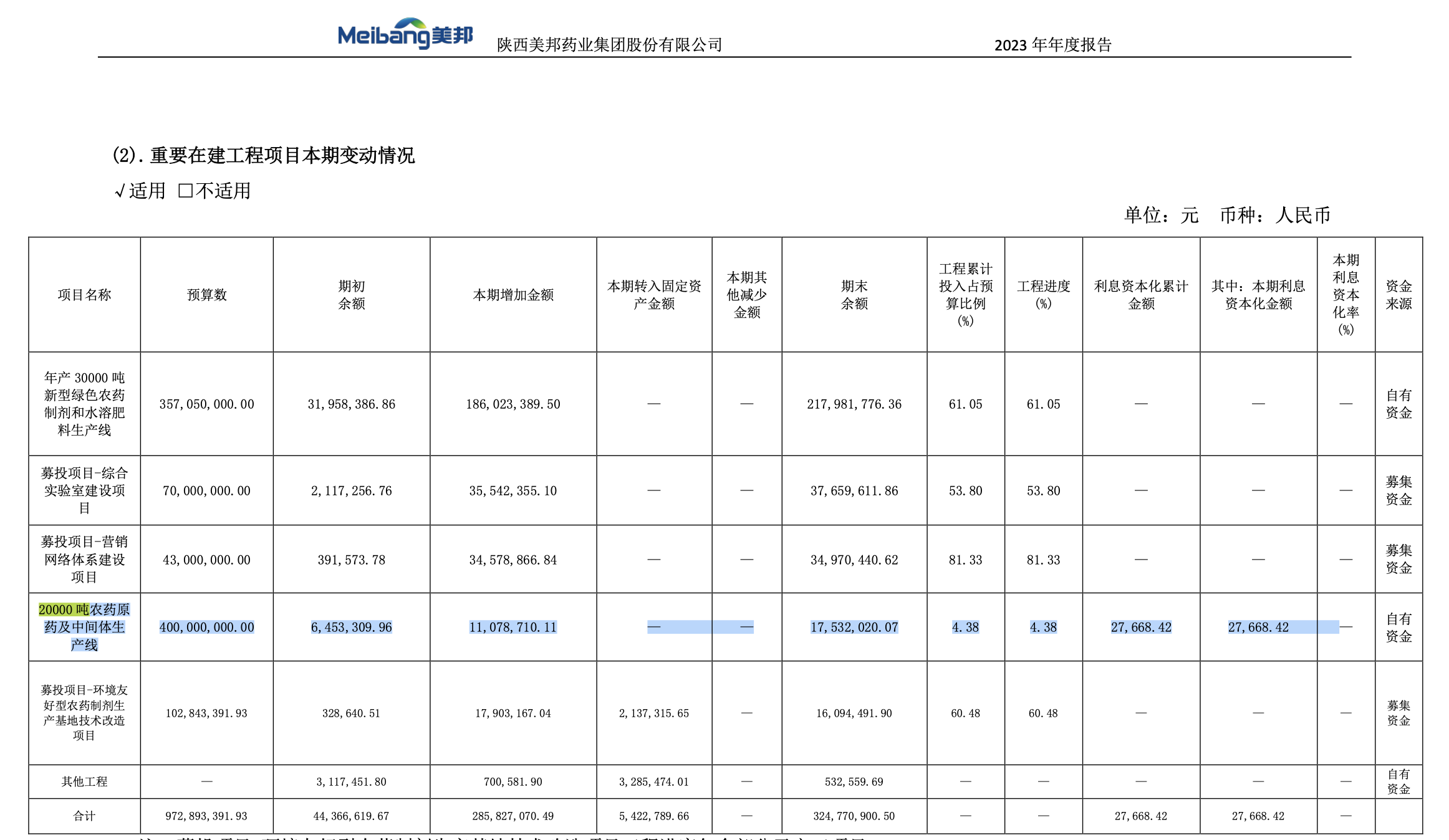即便如此也未能挡住美邦股份原药转型的决心——虽然撤回可转债发行,其坚持启动了投资超过13亿的20000吨原药生产项目,资金来源为自筹。