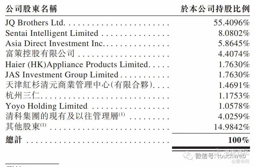 IPO前,倪正东旗下JQ Brothers Ltd持股55.4096%,Sentai Intelligent Limited持股为8.0802%,Asia Direct Investment Inc持股为5.8645%;