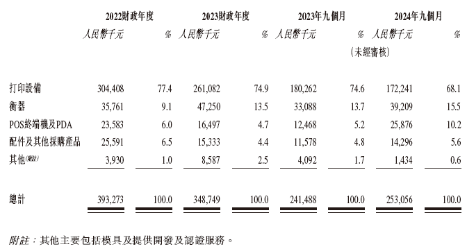 容大合众,目前提供超过100种标准型号的产品,并广泛应用于各行各业,包括但不限于零售、教育、餐饮、物流、仓储、制造、酒店、医疗及环境行业,公司提供的全面产品能够提供一站式AIDC解决方案,并促进客户业务的数字化升级。例如公司开发了内置打印模块、摄像头及NFC阅读器的POS终端机,以满足客户在自动化、降低运营成本、数据管理和交易管理等方面的具体要求,并应用于多个行业。公司的专门打印机及PDA还允许物流、仓储和制造行业的用户追踪实时库存位置及状态,通过打印及追踪标签和条形码管理包裹,以及集中数据管理和分析。在教育行业方面,公司与某客户(一家在中国从事一个领先品牌的便携式学习打印机销售的智能教育装置供货商)合作开发便携式学习打印机,配备光学字符识别(OCR)文本识别及文本编辑功能,专为学生获取学习材料及准备习作和笔记而设计,公司是该客户的主要供货商之一,据弗若斯特沙利文指,容大合众于2023年按生产价值计算为中国便携式学习打印机供应市场中市场份额为13.9%。