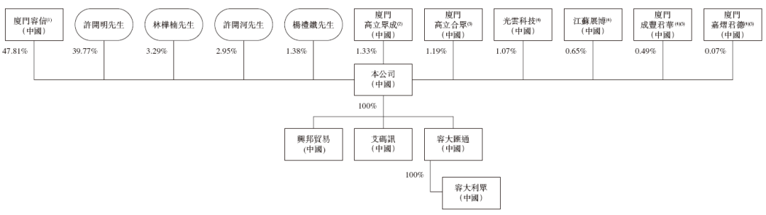 雇员持股平台厦门高立众成(许开河先生为普通合伙人),持股1.33%;