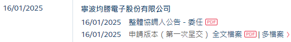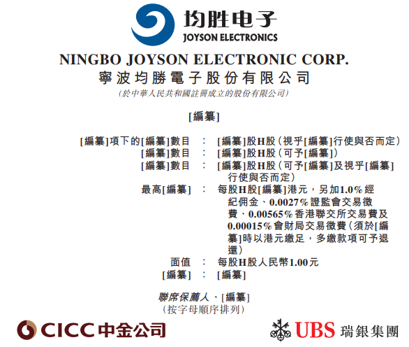 2025年1月16日,宁波均胜电子股份有限公司 Ningbo Joyson Electronic Corp.(下称"均胜电子”)向港交所递交招股书,拟香港主板挂牌上市。