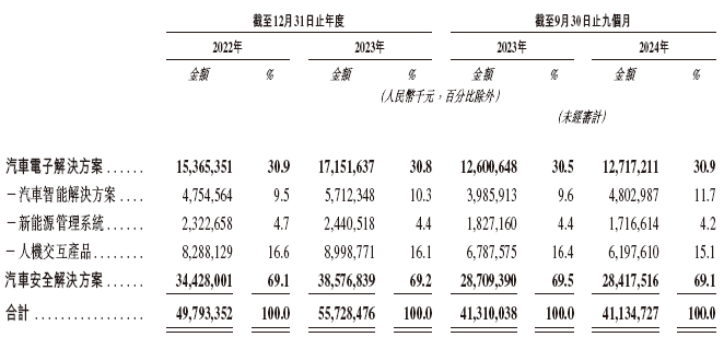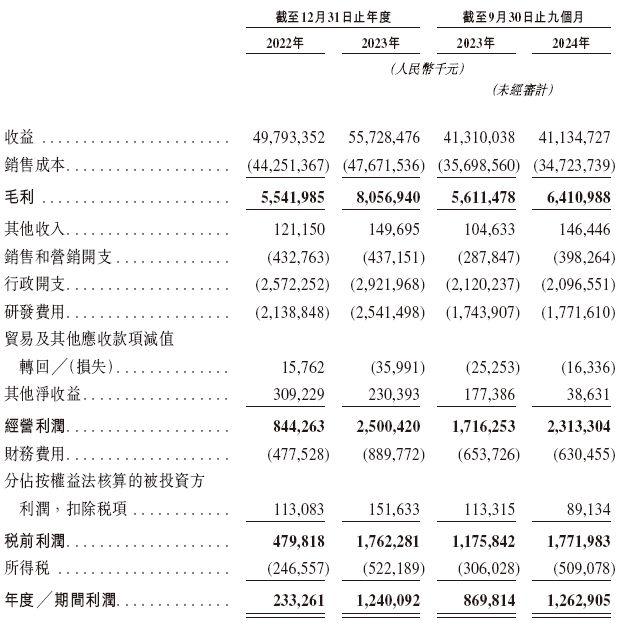 招股书显示,在过去的2022年、2023年和2024年前九个月,均胜电子的营业收入分别为人民币497.93亿、557.28亿和411.35亿元,相应的净利润分别为人民币2.33亿、12.40亿和12.63亿元。